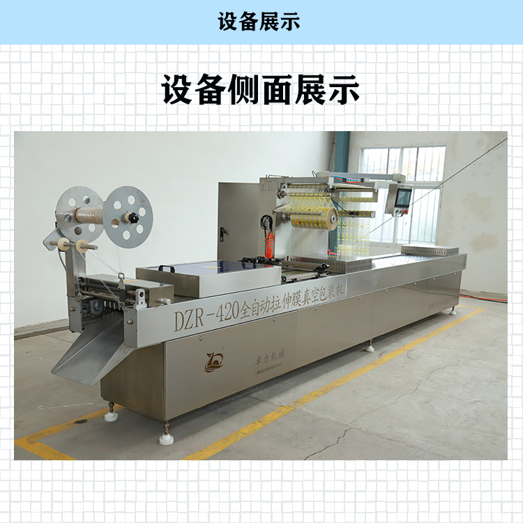 一、下膜預(yù)熱:拉伸膜真空包裝機的先需要把下膜加熱到設(shè)定的溫度以使薄膜變軟,然后為進入下一道工序做準備。