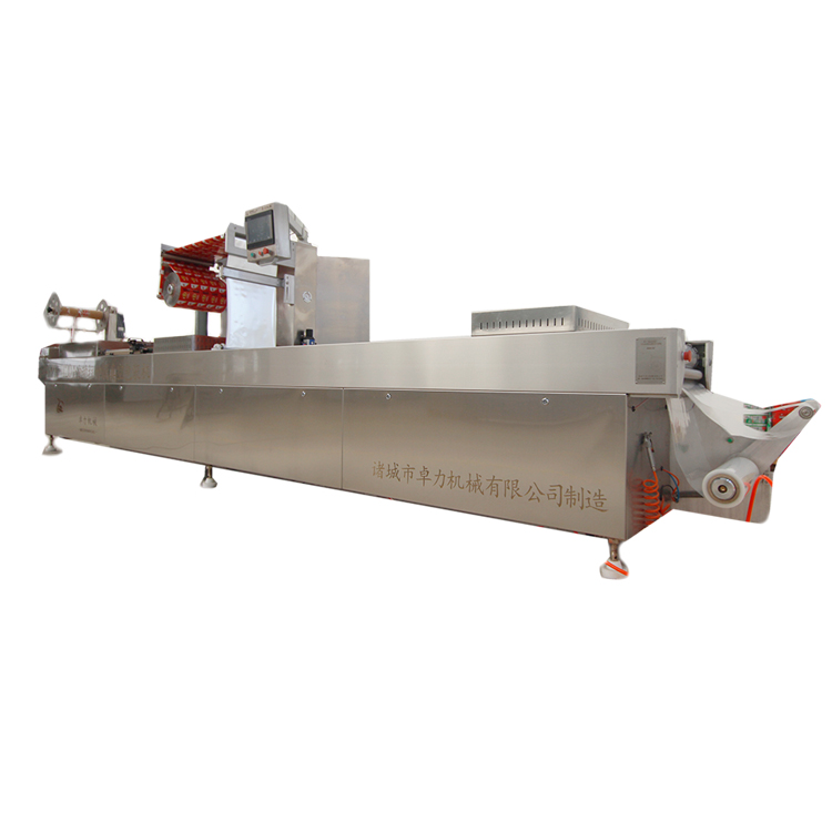拉伸膜真空包裝機(jī)的拉伸深度可達(dá)140mm。工作時(shí)通過(guò)下室內(nèi)墊板調(diào)整所需的拉深深度。根據(jù)用戶要求,我們也可以把成型室和加熱板設(shè)計(jì)成適合使用硬底膜和半硬底膜的成型要求。